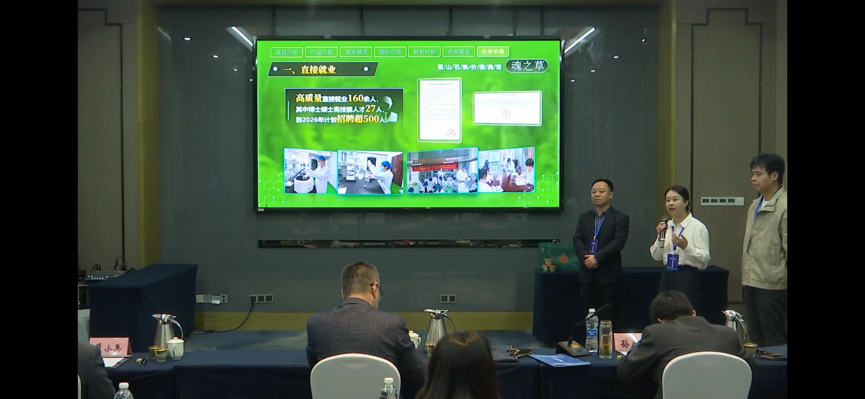 决赛环节设置“理论考试”与“现场答辩”两大模块,在竞争激烈的决赛现场答辩环节,霍斛公司参赛团队在霍山石斛炮制技艺非遗传承人张平老师带领下,以“开创霍山石斛新品类 贡献乡村振兴新力量”为主题,详细讲解了魂之草即溶霍斛产品的研发历程和FD冻干技术的创新应用,为霍山石斛产业升级开辟了新路径,解决了霍山石斛产品开发中营养保持难,溶解服用难,携带不便等行业难题,成功创新开发了魂之草即溶霍斛产品,成为了即溶霍斛草本固体饮品的首创者和标准主导制定者,赢得了现场评委的一致认可。