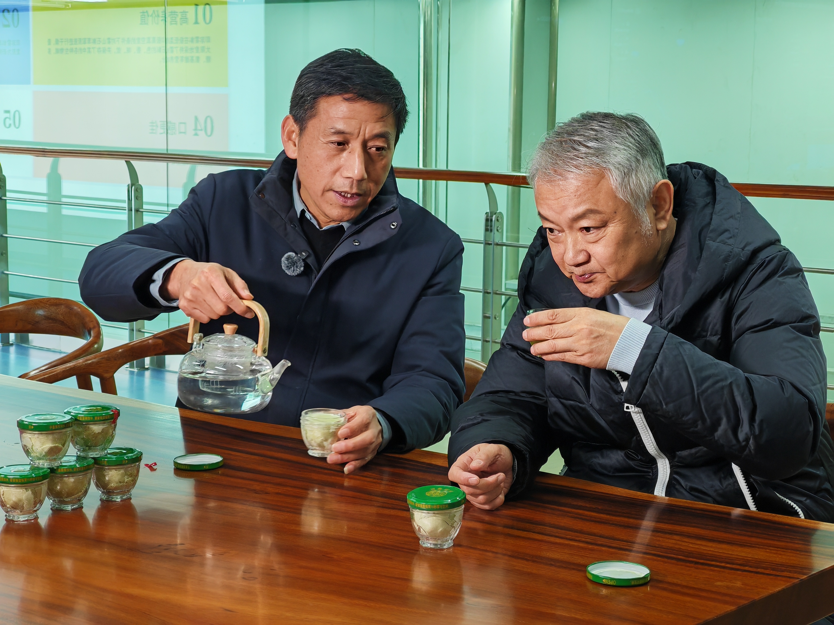 从承载千年历史的霍山石斛名称与药用文化,到亲手体验非遗枫斗制作的匠心工艺,再到见证现代冻干科技对霍山石斛活性的高效留存,欧阳奋强老师全程细致观摩、积极交流。他对魂之草在恪守传统精髓的同时,大胆融合现代科技的创新实践给予了高度评价。随后,他饶有兴致地现场品尝了鲜活营养的魂之草即溶霍斛和清雅芬芳的霍斛花茶,在亲身体验“药食同源”养生智慧的过程中,获得了别样的感受。