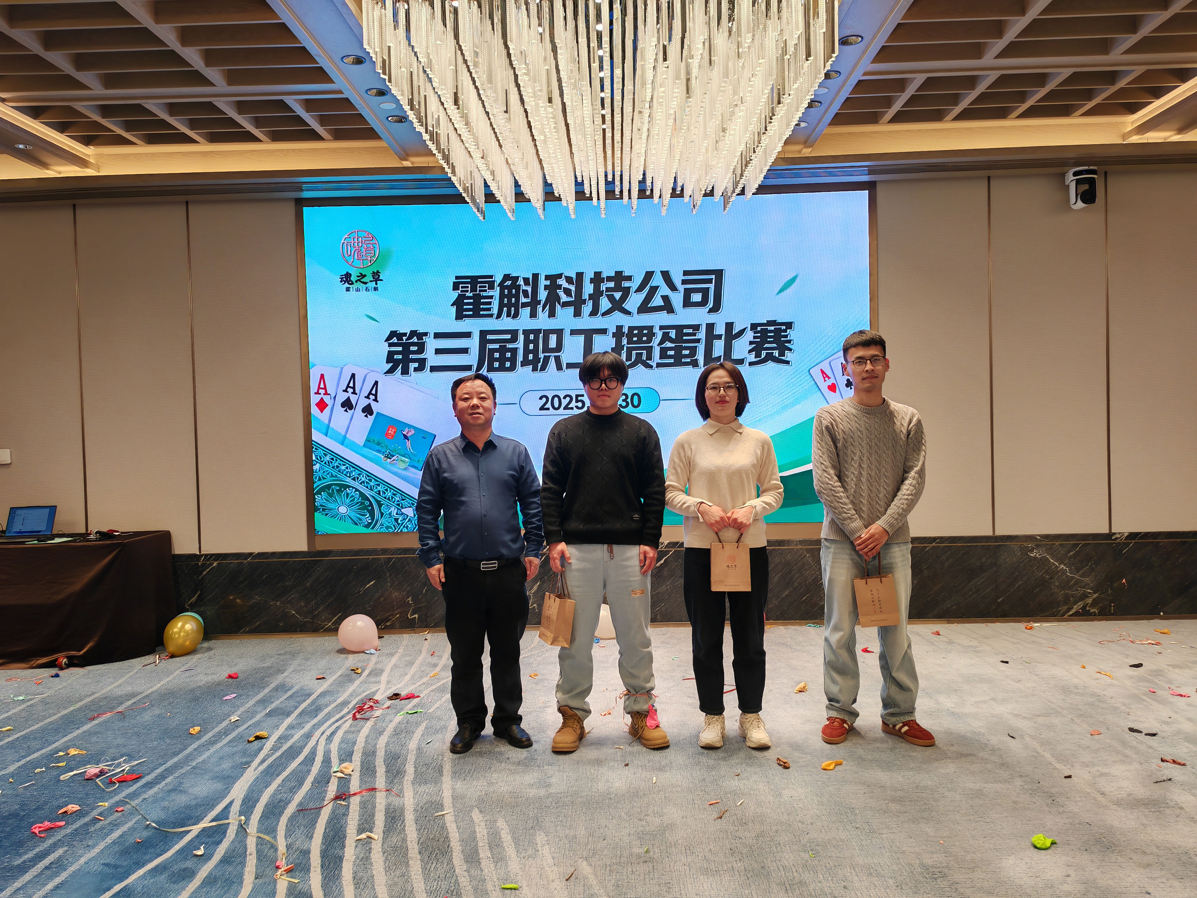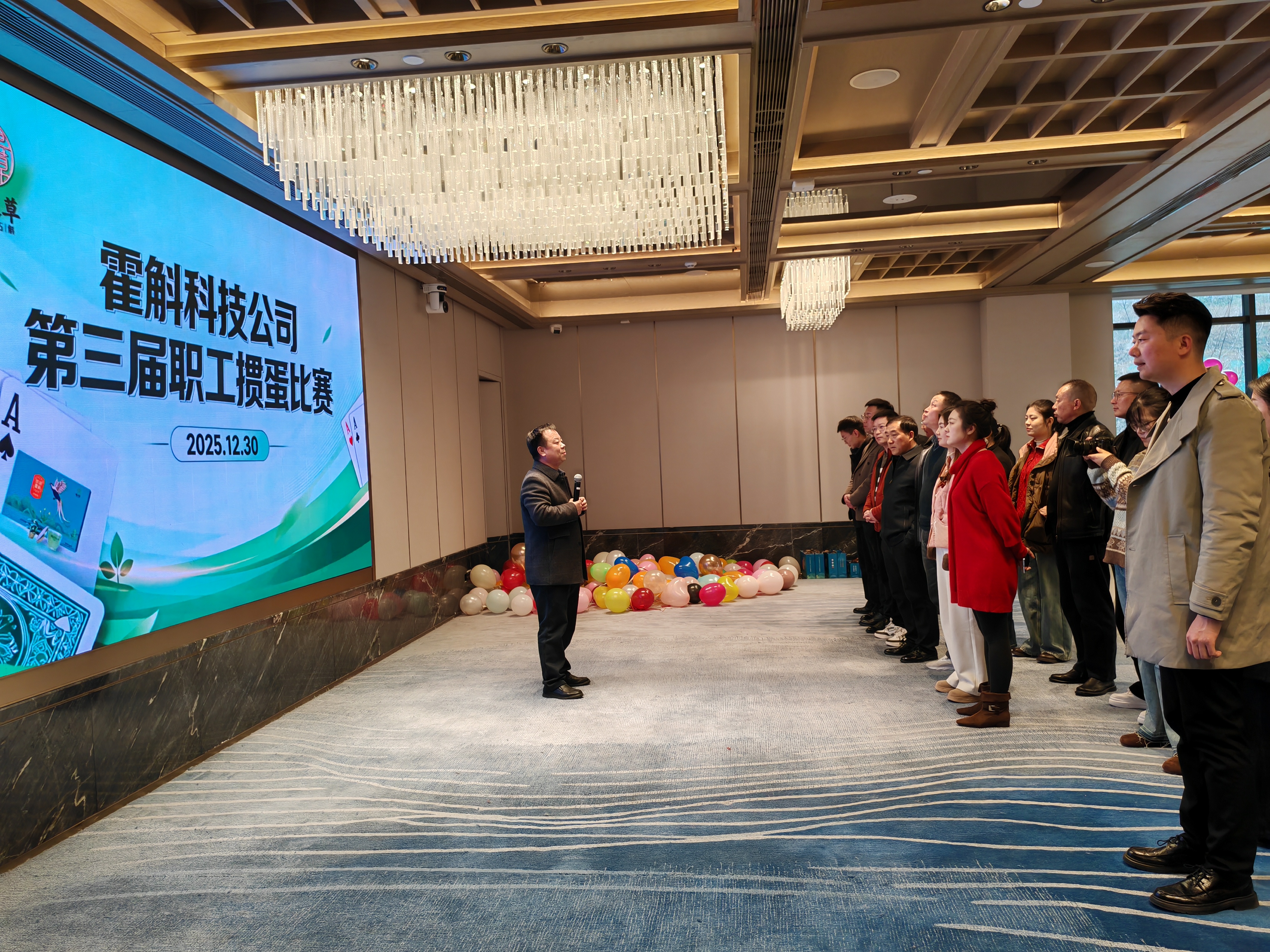 本次活动形式多样、气氛热烈。当天下午在迎驾金陵大酒店衡山厅,率先开启的第三届职工掼蛋比赛,早早点燃了全场热情。霍斛科技公司工会主席张平在赛前讲话中鼓励大家放松心情、轻装上阵,享受比赛乐趣。随后他详细介绍了比赛规则,并正式宣布比赛开始。