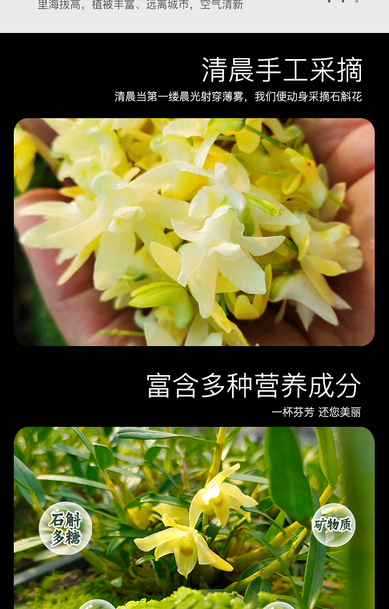 ·富含石斛多糖、氨基酸、花青素、精油、矿物质