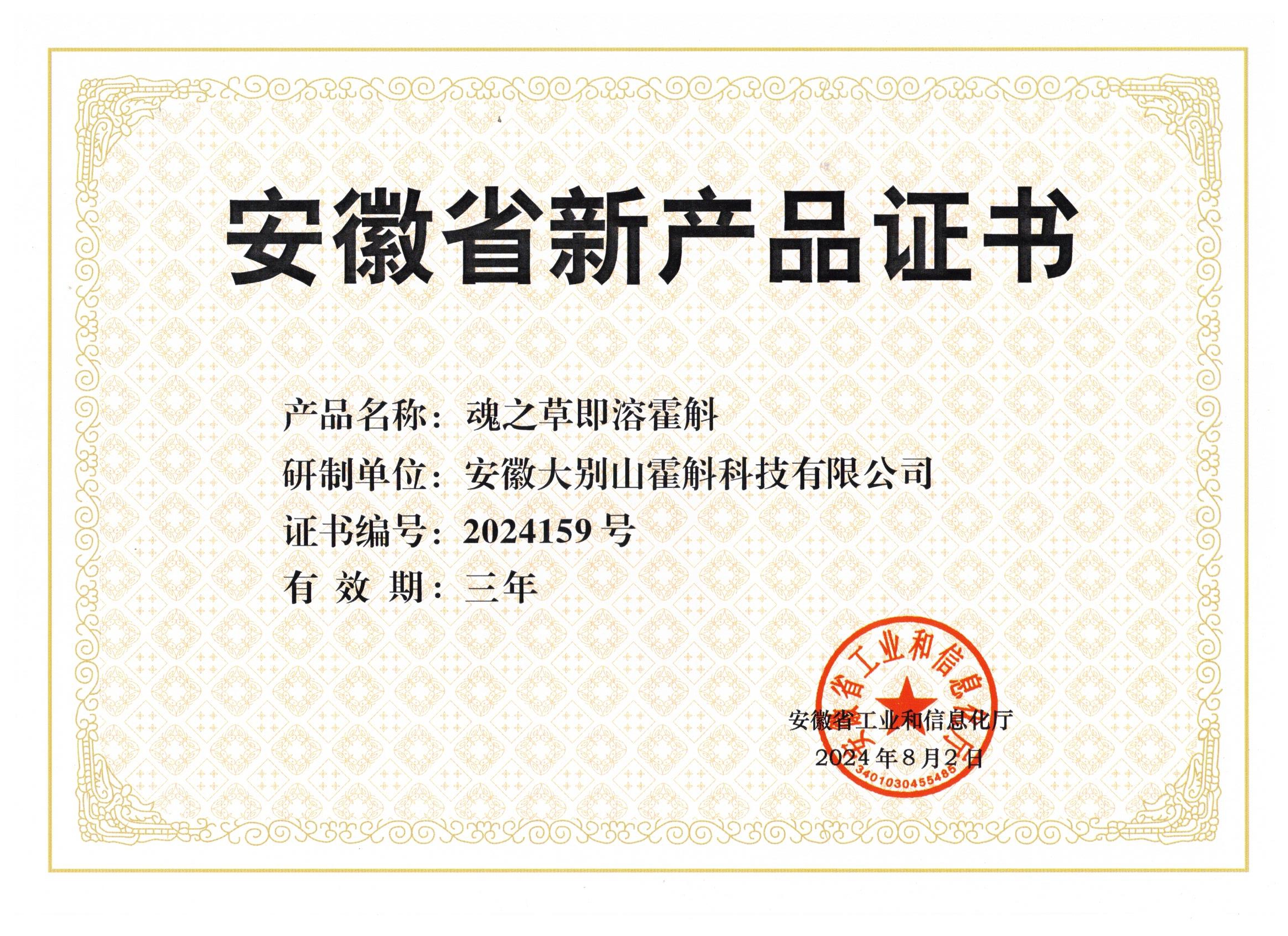 在这个追求健康与品质的时代,霍斛科技公司凭借在传统中药材现代化领域的深耕细作,公司拳头产品——魂之草即溶霍斛,荣获安徽省新产品证书。