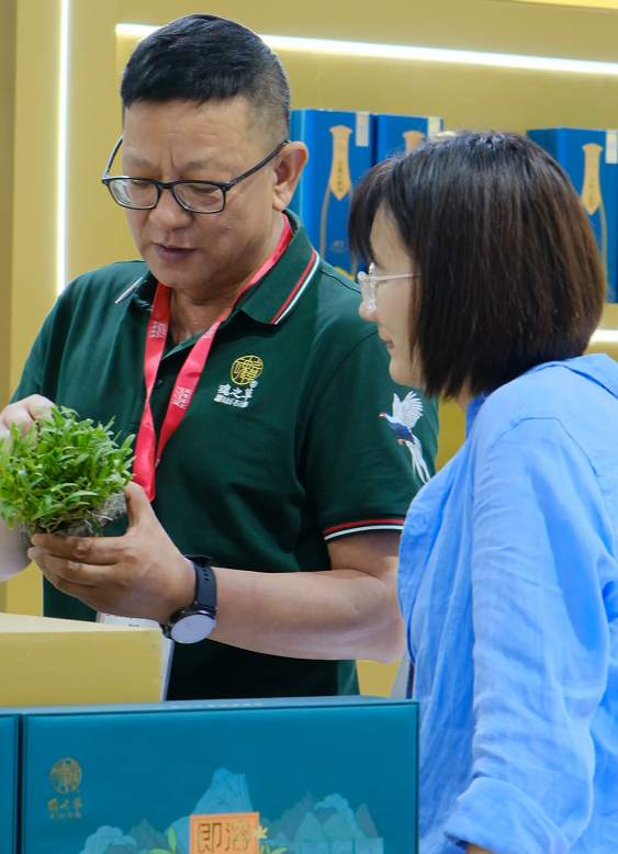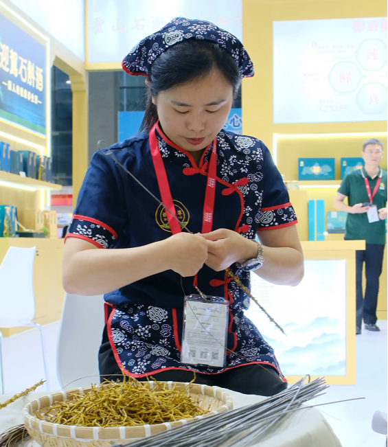 3、魂之草霍山石斛非遗炮制区:霍山石斛承载千年历史,霍山石斛产业传承非遗文化。这不仅是手艺的延续,更是文化的坚守。我们不仅要让这门技艺薪火相传,还要让更多人感受非遗的魅力与价值。”