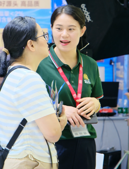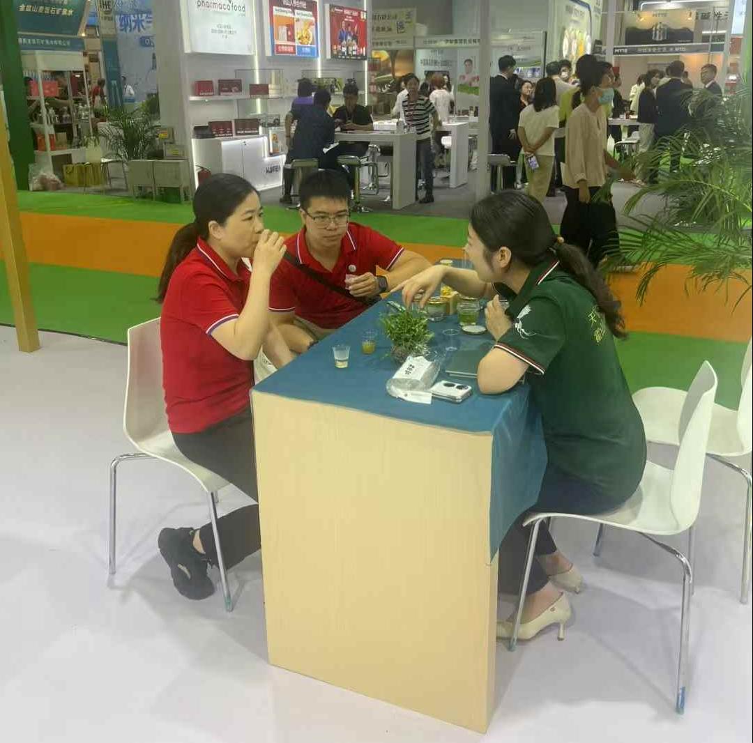 走进广交会展馆,各大品牌展厅精心布置,科技感与传统文化交融。15.2馆作为健康滋补品核心展区,吸引众多专业买家驻足。魂之草展位融合大别山生态元素与现代设计,打造沉浸式体验空间。展厅内接连不断的有咨询、品鉴、客商洽谈,现场工作人员忙而有序,热情解答每一位访客的疑问。