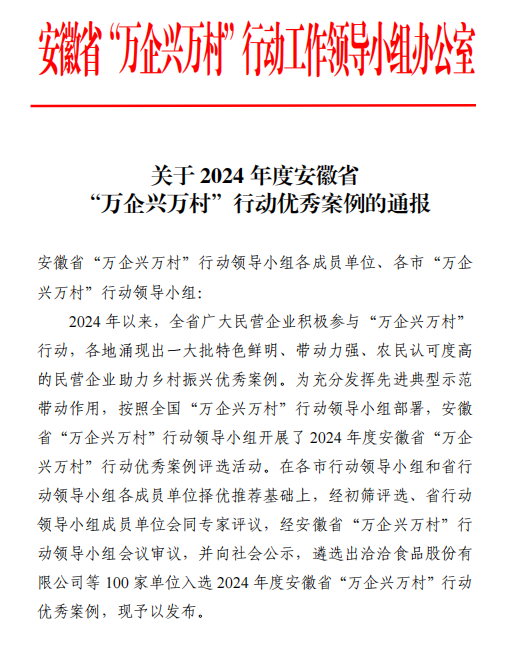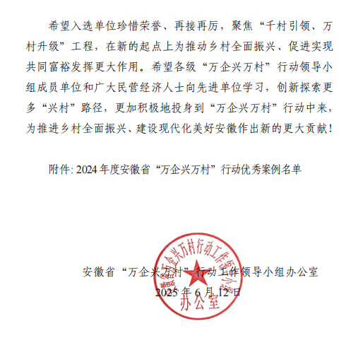【喜报】安徽大别山霍斛科技有限公司项目入选 “万企兴万村” 优秀案例